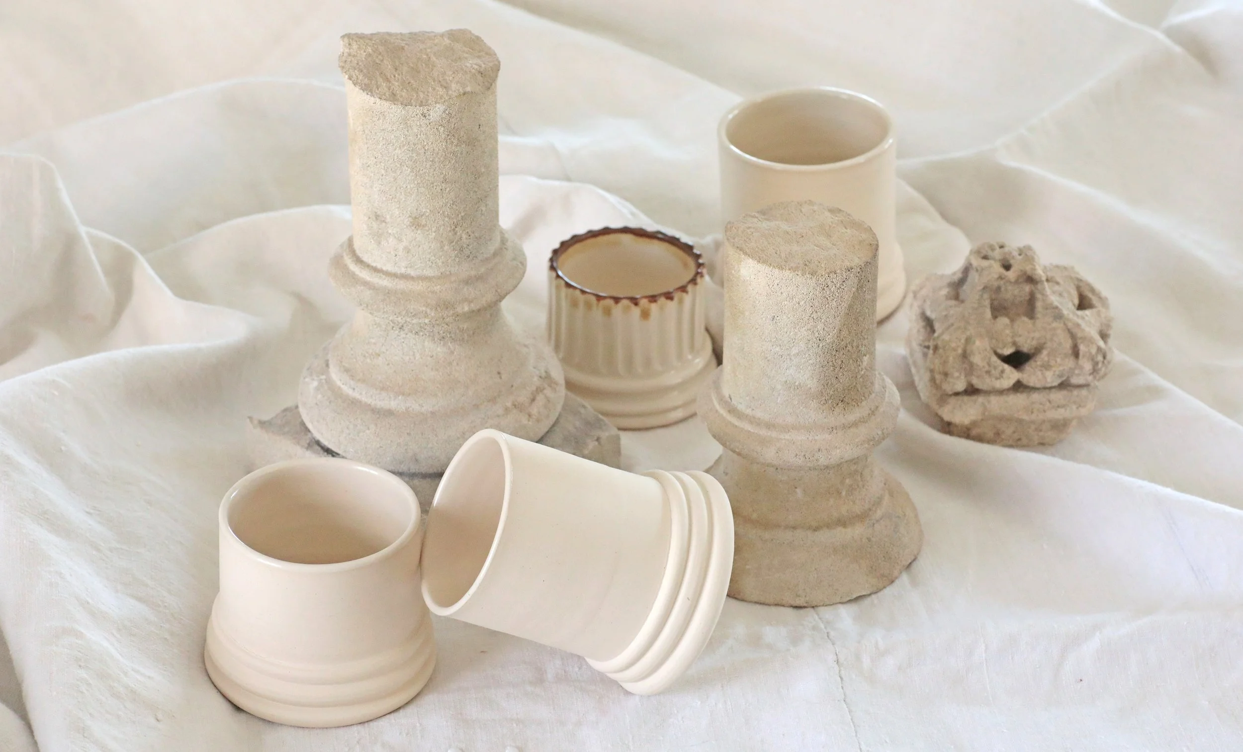 That sense of wonder led me to clay. I began to shape and refine, searching for a way to echo their presence—to translate their strength, their texture, their quiet dignity into something both beautiful and useful. Each column I create is subtly different, its proportions guiding the placement of every carved detail, every band thoughtfully formed by hand. They become more than objects: candle holders that glow softly in the evening, vessels for fresh garden stems, steadfast bookends, or companions on a desk. I finish each one with a clear glaze within and a carefully polished exterior, resulting in a surface that feels almost alive—smooth, velvety, and irresistibly tactile, as though it carries a memory, gently inviting you to reach out and connect.